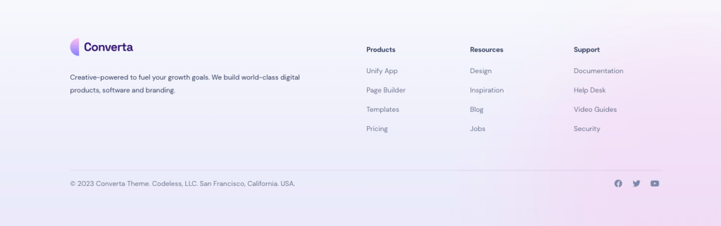 Allows users to add custom sections above or below the main footer section, like subscribe, forms, blog etc.